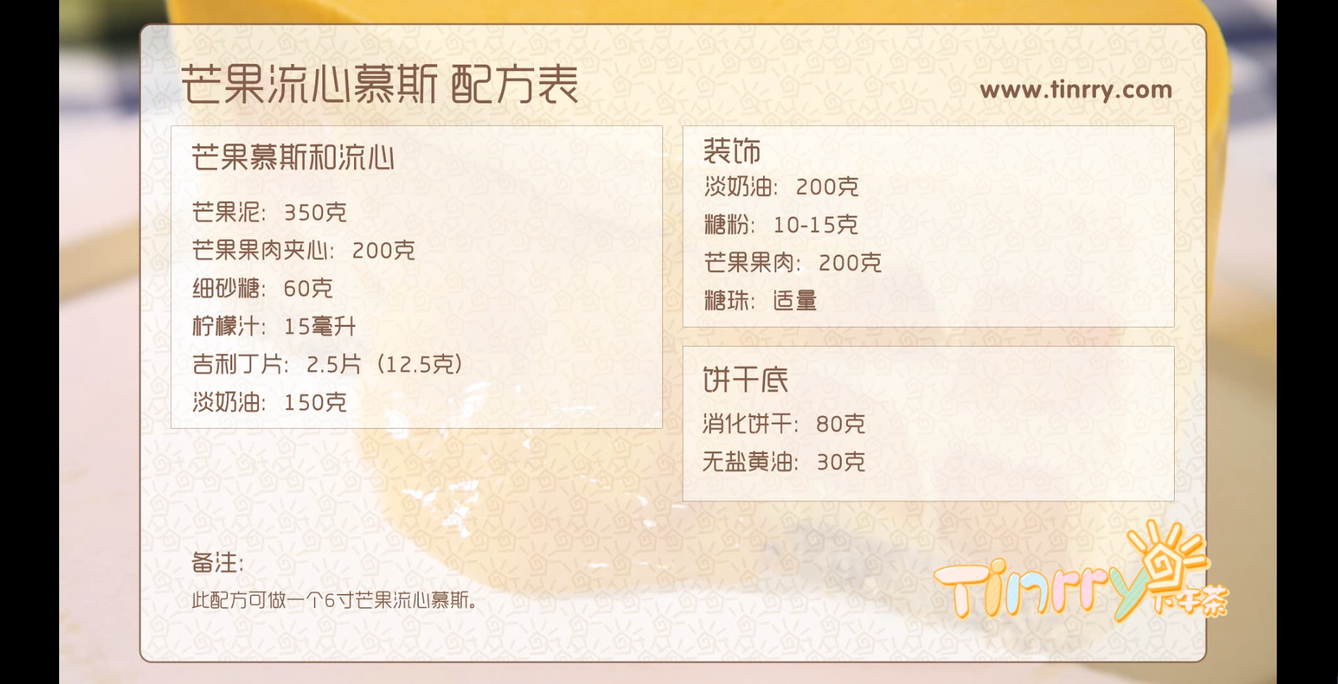 备注:此配方可以做一个6英寸直径15cm的圆形活底模具