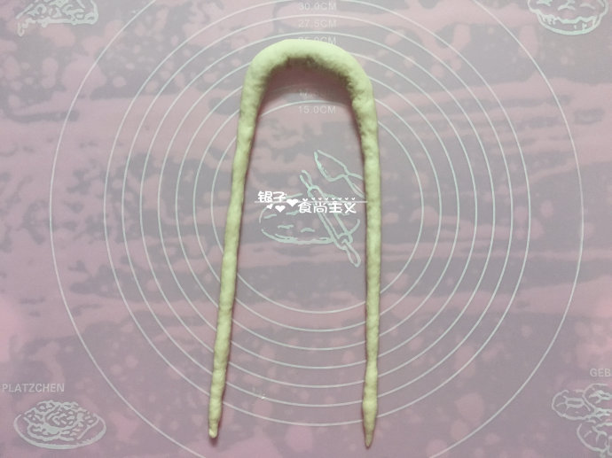 6、再将两端分别搭回中间较粗的地方,如图6,然后放在油纸上放便转移;