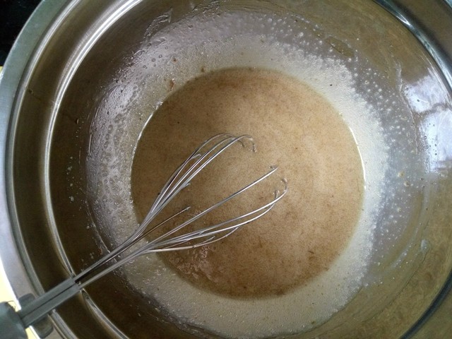 4.用手动打蛋器搅拌,至成顺滑的面糊。