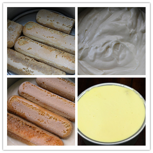 主要原料:马斯卡彭芝士250克,蛋黄2个,砂糖75克,清水75克,淡奶油150克,吉利丁片10克(夏天可以多加点),手指饼干一包,可可粉,糖粉,咖啡酒适量。