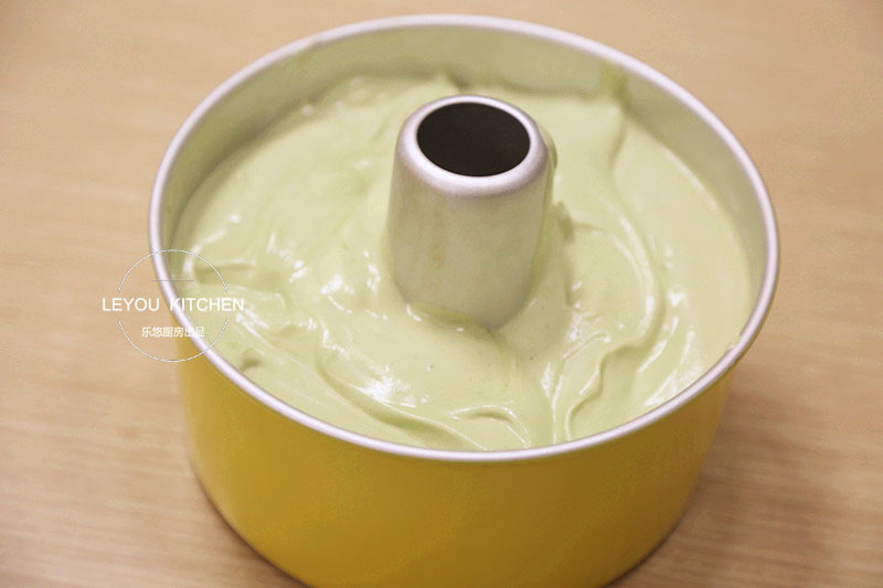 3、 我用的模具是中空蛋糕模具,直径18CM,这个量正好烤一个。