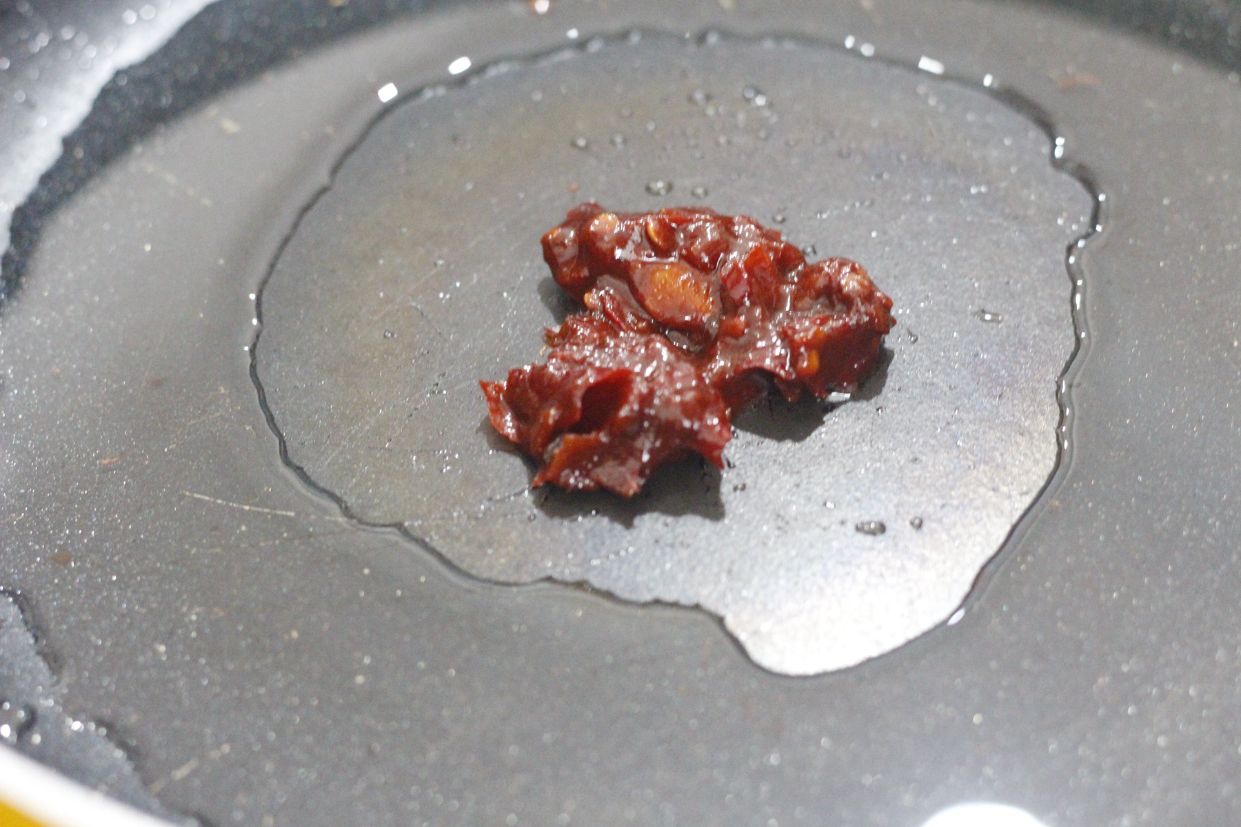 5、挑出胡椒、八角和蒜,剩下香油。香油中加入一大勺的豆瓣酱。