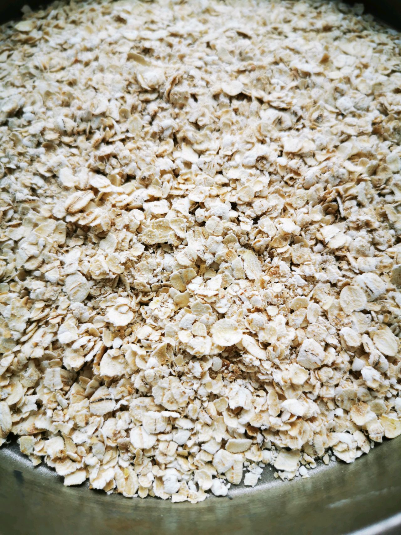 步骤2:燕麦我放的多一些,不喜欢的可以少放,剪多少燕麦加入同等量的高筋粉就可以
