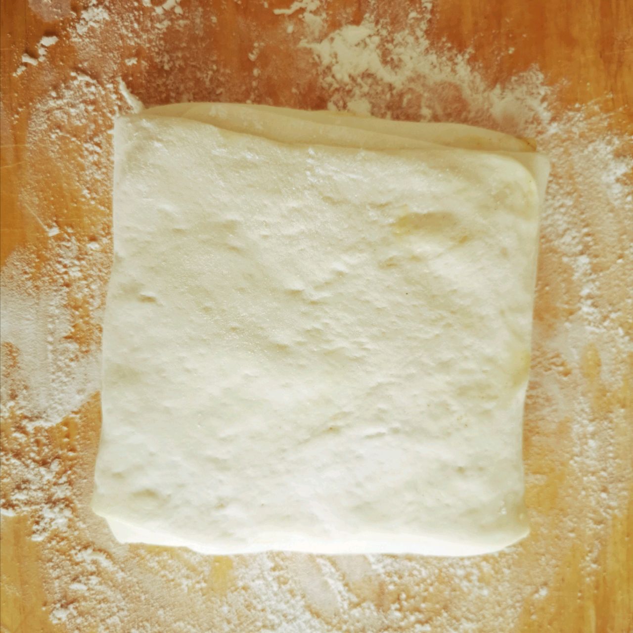 步骤7:折叠好了用擀面杖少擀一下,不要擀的太用力。