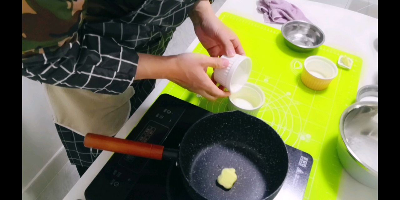 步骤2:黄油加牛奶,微开就行了