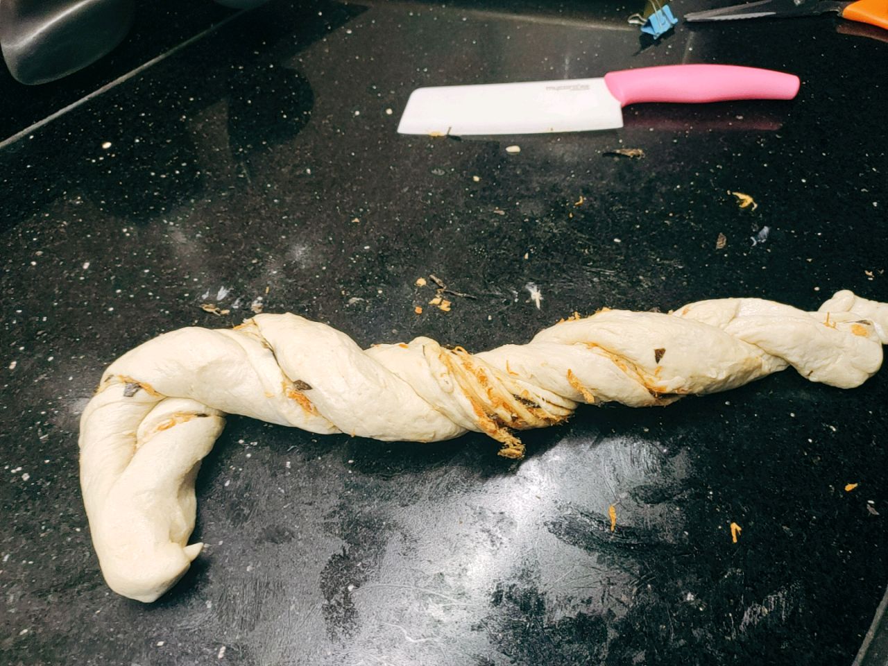 步骤16:1/2切开,再一条卷几下,重复另一条