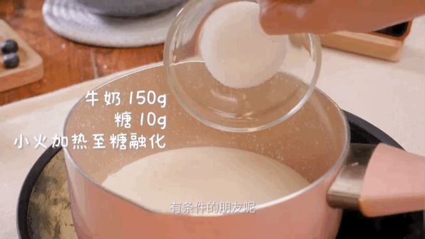 步骤4:牛奶和面糊混合,面糊过筛到奶锅里