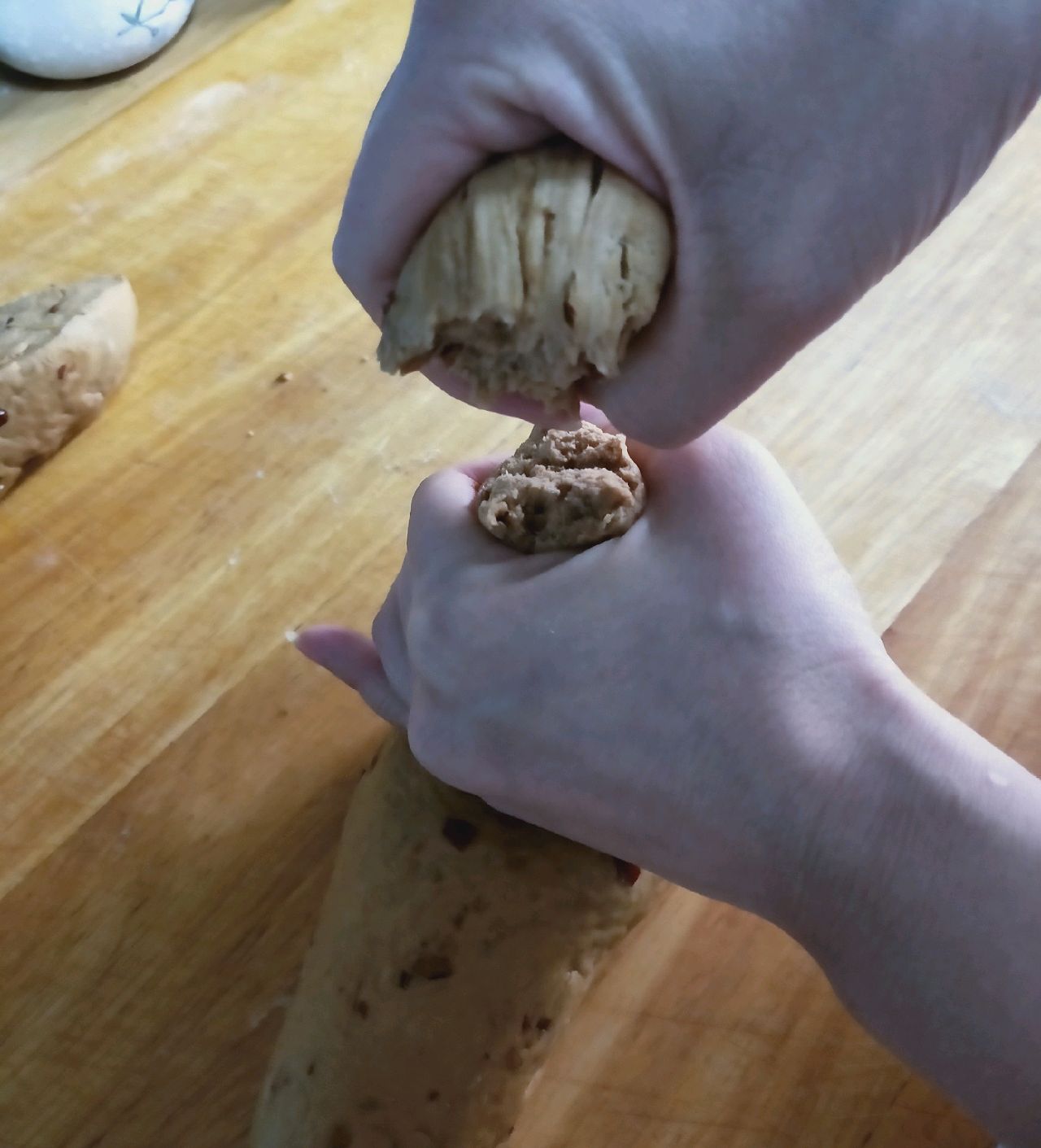 步骤9:像揪饺子面筋那样揪剂子。