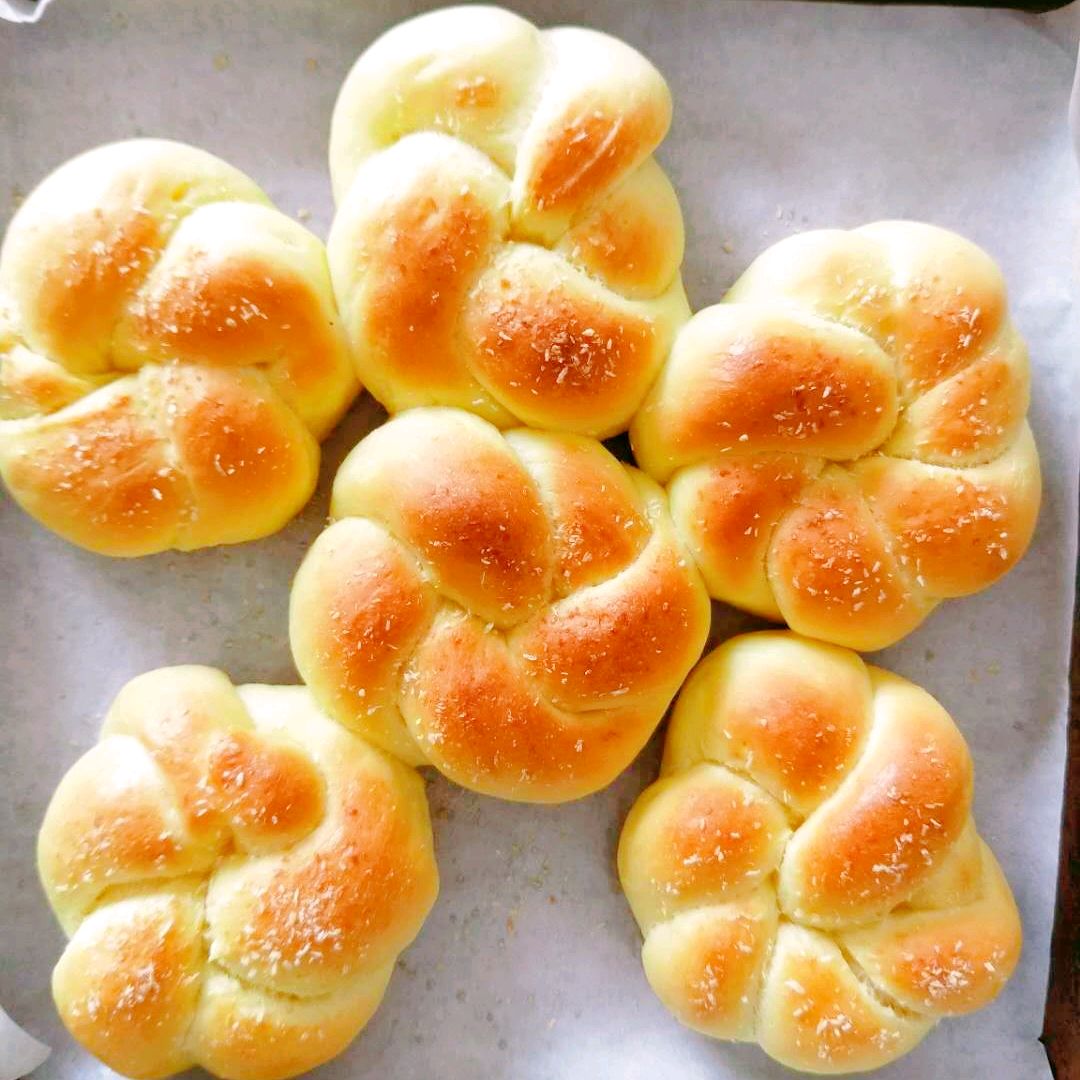 漂亮的花朵小面包,为了消耗家里淡奶油,成品口感非常松软,拉丝效果极佳烤箱脾气仅供参考面粉吸水量会有差异