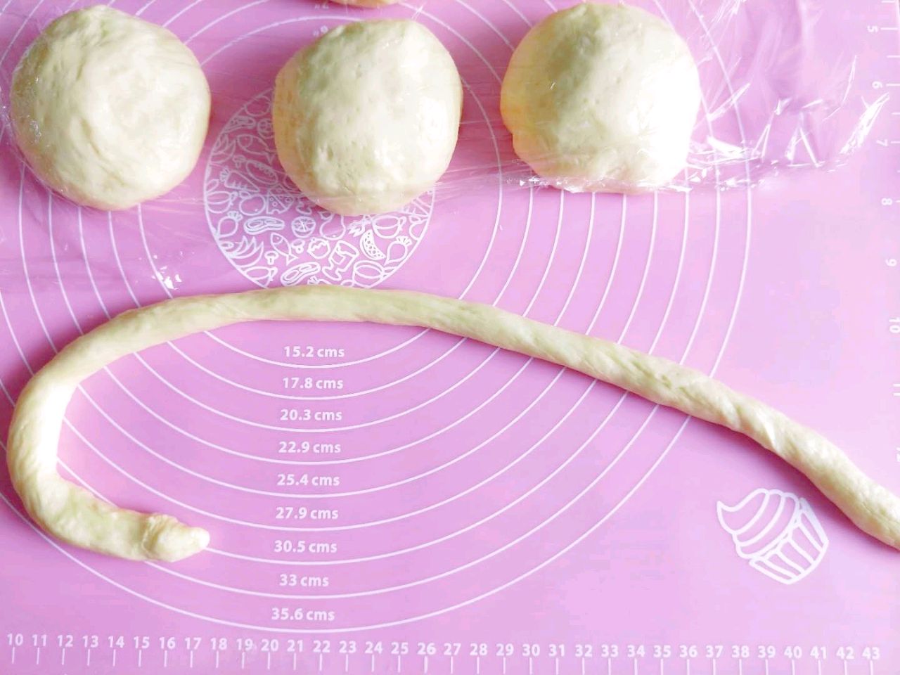 步骤7:拍完气的面搓成长条,大约50cm,按照上图方法整形