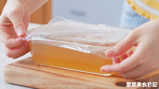 步骤7:煮好的糖水装入密封盒中,室温静置至凝固状态即可· 若喜欢冰凉口感的,晾凉至室温后再冷藏半小时食用,可冷藏保存3天左右