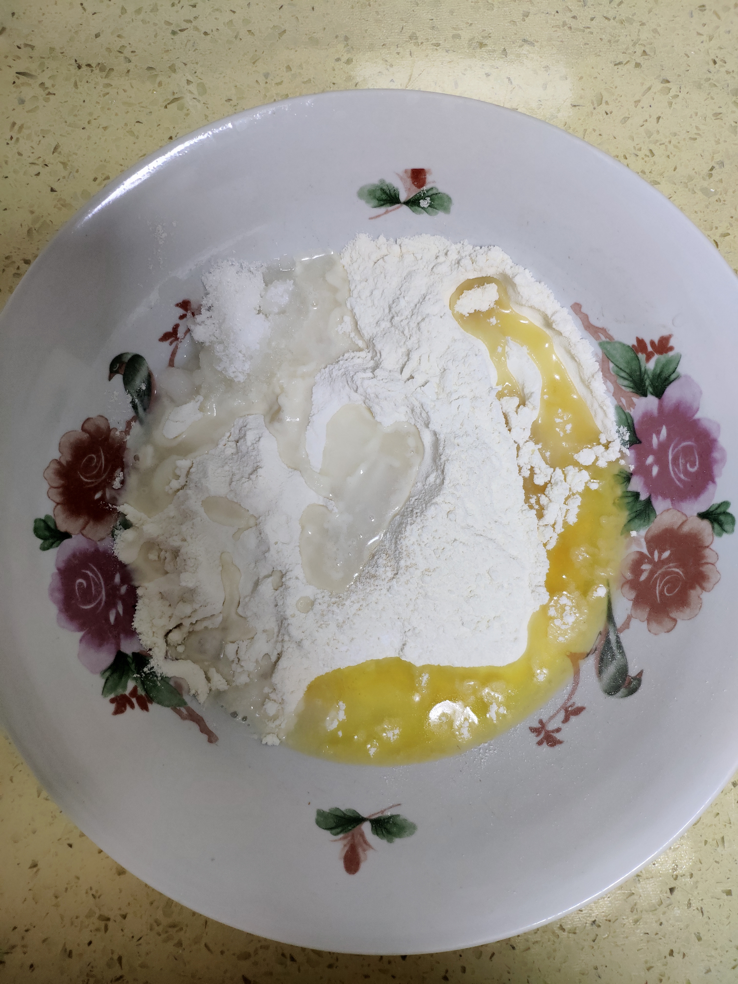 步骤3:适量的加入清水,和成表面光滑的面团。