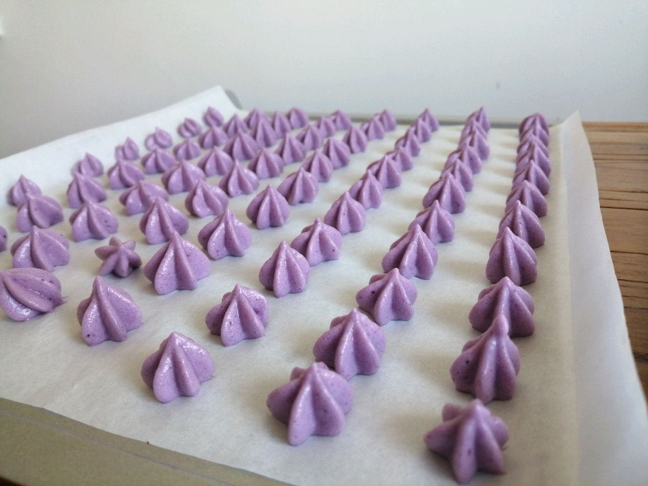 步骤22:至此,酸酸甜甜的蓝莓溶豆就完成了。冷却的溶豆,尽快装进密封罐,以免回潮。