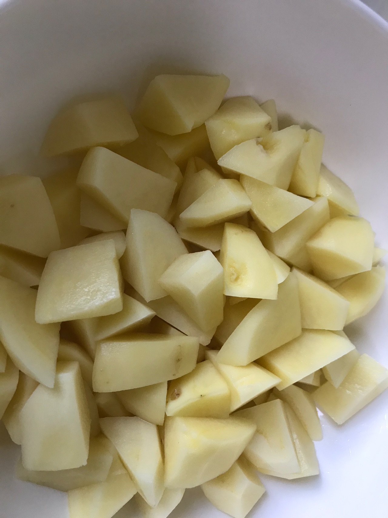步骤1:土豆切小块,用厨房纸多吸掉一些水分
