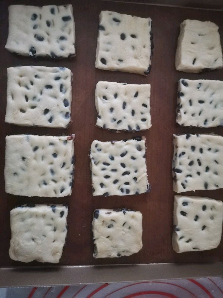 步骤8:最后一次擀长,三分之二处撒蜜豆